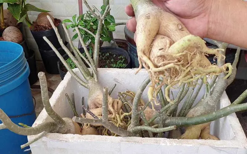 Cây sứ thái được đặt cố định vào chậu với giá thể thoát nước để bắt đầu quá trình ra rễ