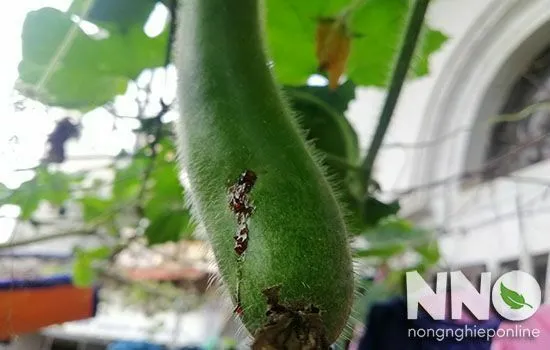 Quả bí xanh bị ruồi vàng đục trái gây thối rụng