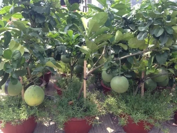 Cây bưởi trong chậu đã ra trái xum xuê đúng dịp tết