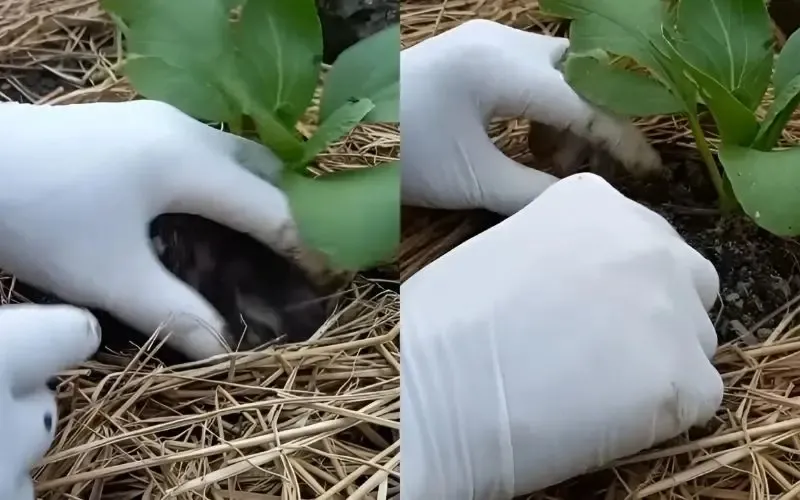 Dùng tay nén nhẹ xung quanh gốc để loại bỏ túi khí. Việc này giúp rễ non tiếp xúc trực tiếp với đất.
