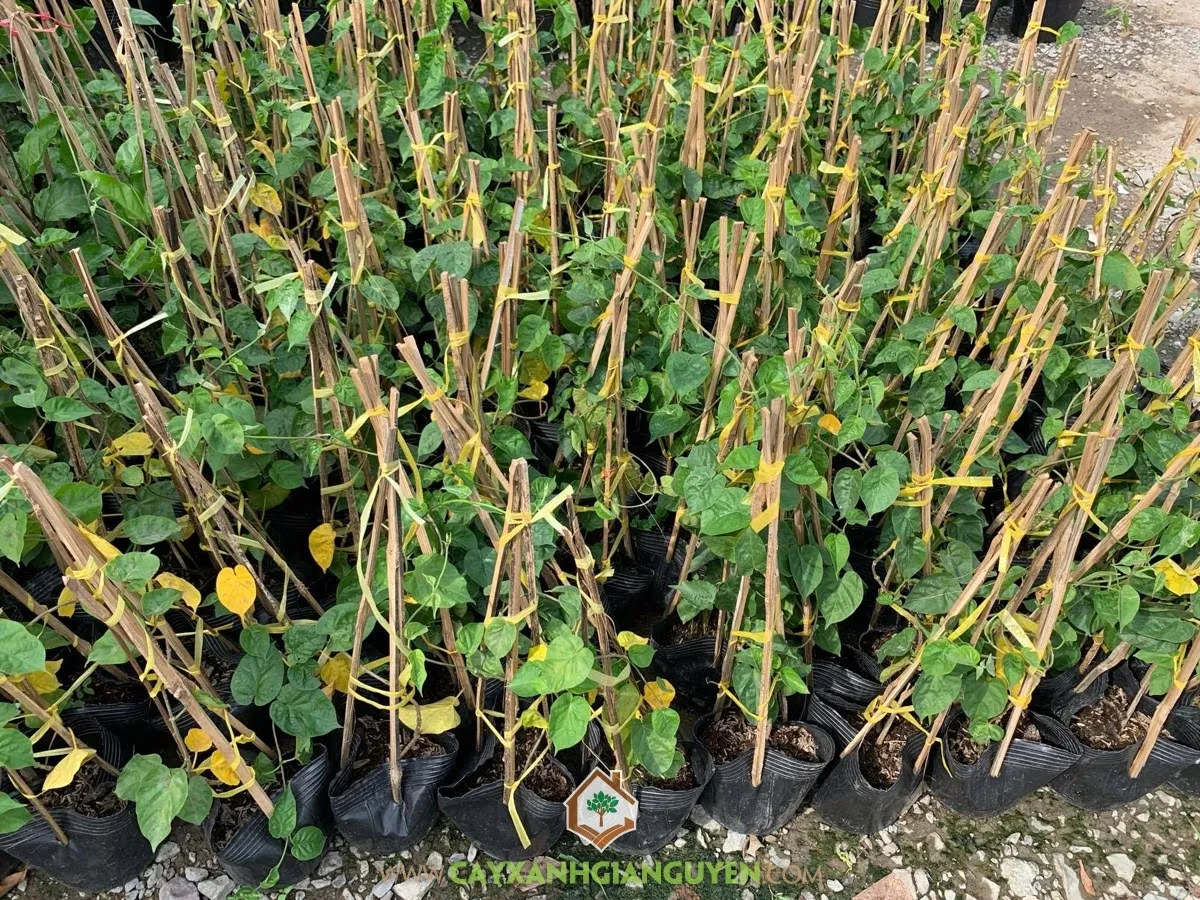Để cây có điểm tựa ban đầu, hãy dùng các cọc tre hoặc cọc gỗ nhỏ cao 1-1.5m cắm sát thân cây Thiên Lý. Buộc nhẹ dây leo non vào cọc. Trong tuần đầu, cần tưới nước 2 lần mỗi ngày và che chắn nhẹ nếu nắng quá gắt.