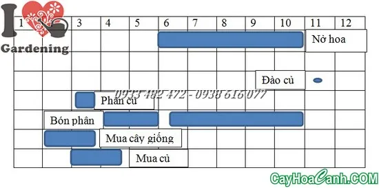 Thời gian ra hoa chủ yếu từ đầu hè đến giữa mùa thu. Ở Việt Nam, cây có thể được trồng để ra hoa vào dịp Tết Nguyên Đán tại các vùng có khí hậu phù hợp. Điều này đòi hỏi kỹ thuật điều tiết thời gian trồng và chăm sóc nghiêm ngặt.