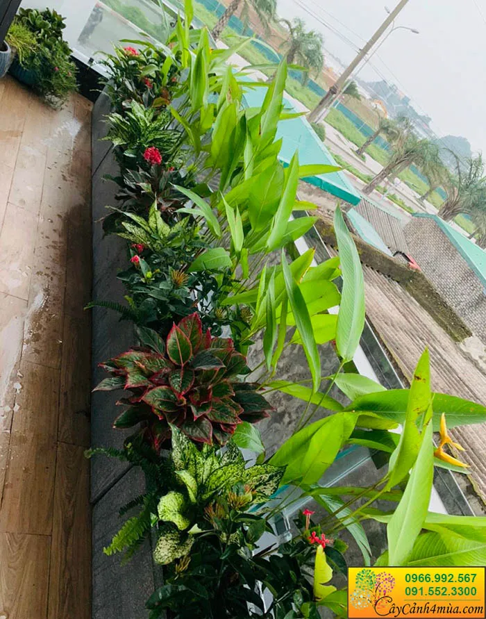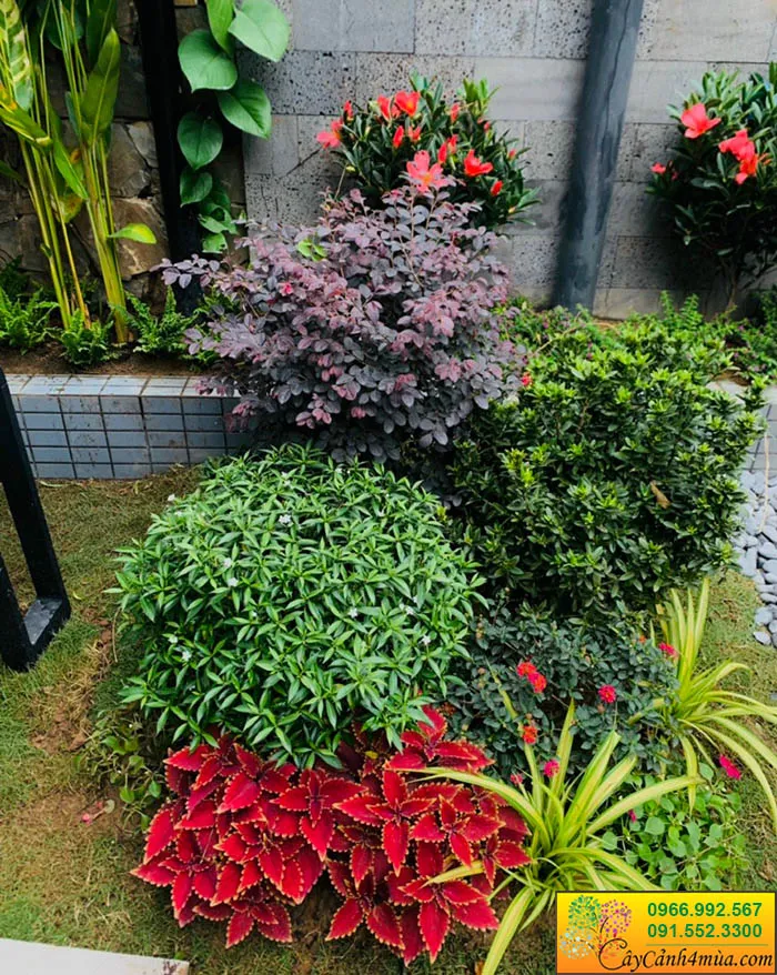 - Cây Hồng Phụng: Cây lá màu, tạo điểm nhấn rực rỡ trong bố cục xanh.