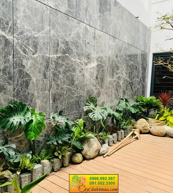 Cây Trầu Bà xẻ Monstera trồng tại khu vực sân vườn