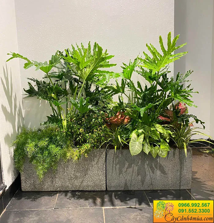 - Chậu đá mài/Xi măng nhẹ: Sang trọng, bền bỉ, phù hợp với phong cách hiện đại.