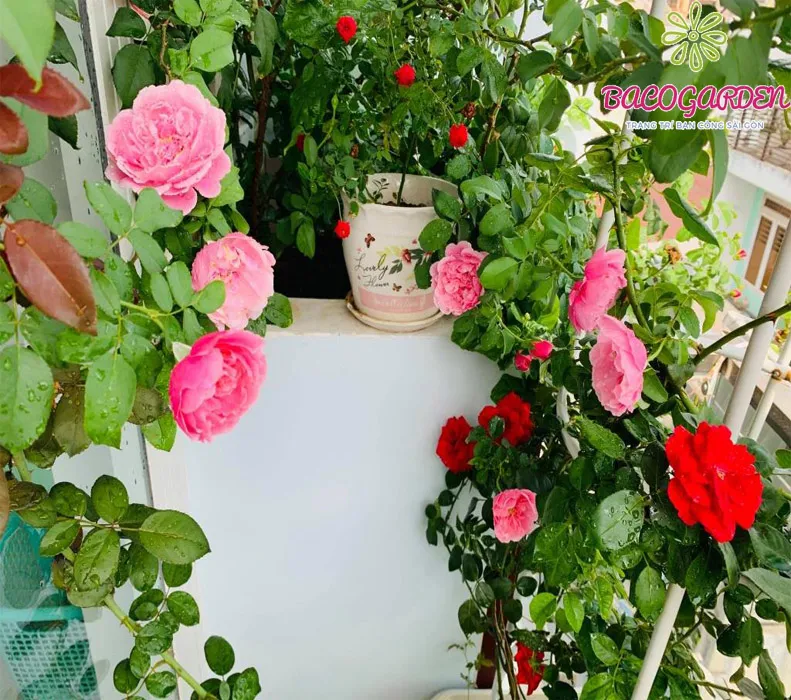 Hình ảnh minh họa vị trí đặt chậu hoa hồng ở ban công nhận đủ ánh nắng cho quá trình chăm sócHình ảnh minh họa vị trí đặt chậu hoa hồng ở ban công nhận đủ ánh nắng cho quá trình chăm sóc