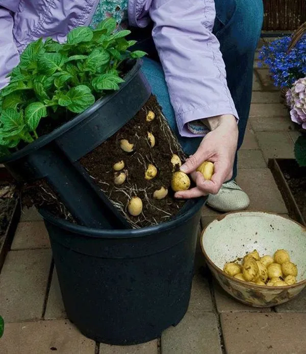 Trồng củ khoai tây đã nảy mầm vào thùng hoặc chậu lớn