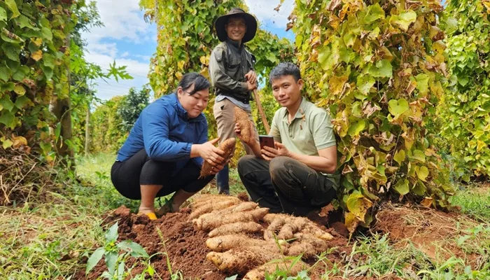 Khoai từ là cây thân leo, việc làm giàn là bắt buộc để thân lá phát triển tối ưu, tạo điều kiện quang hợp tốt nhất cho quá trình hình thành và tích lũy chất dinh dưỡng vào củ.