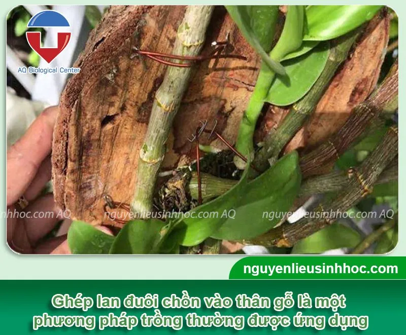 Ghép lan Đuôi Chồn vào gỗ lũa là một phương pháp ghép gỗ phổ biến, giúp cây phát triển tự nhiên và phô bày vẻ đẹp một cách nghệ thuật. Phương pháp này mô phỏng môi trường sống tự nhiên của lan rừng. Cây sẽ bám rễ hoàn toàn vào khúc gỗ, tạo thành một tác phẩm nghệ thuật sống động.