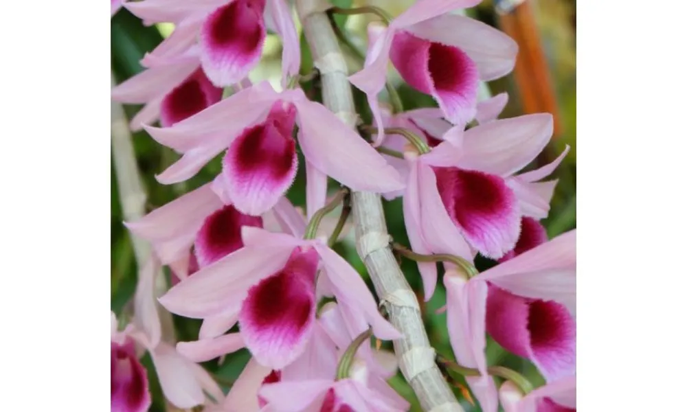 - Đặc điểm thân: Thân Giả Hạc ngắn và nhỏ hơn so với lan Trầm Tím. Thân màu xanh hơi vàng, xuôi về ngọn lớn dần, tạo các ngấn mắt đốt rõ ràng.