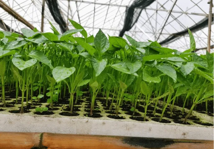 Ớt xiêm xanh non đang sinh trưởng mạnh mẽ, thân cứng cáp, chuẩn bị cấy ra đất lớn