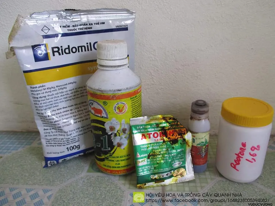 Bộ ba thần thánh giúp cách trồng phong lan sau tết hồi phục bao gồm B1, Atonic, và N3M (hoặc Rootone). Vitamin B1 giúp cây giảm stress, tăng cường khả năng hấp thụ dinh dưỡng. Atonic là chất điều hòa sinh trưởng, giúp cây nhanh chóng ra rễ và chồi mới. N3M hay Rootone 1.6% là hỗn hợp kích thích tố rễ, thúc đẩy sự hình thành và phát triển của bộ rễ non.