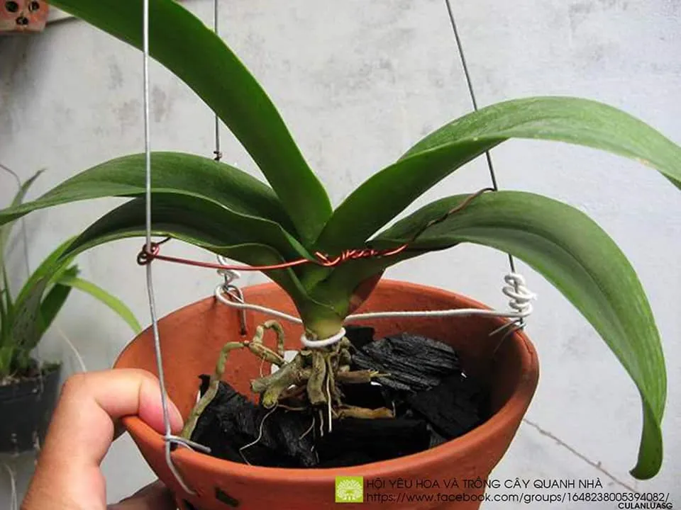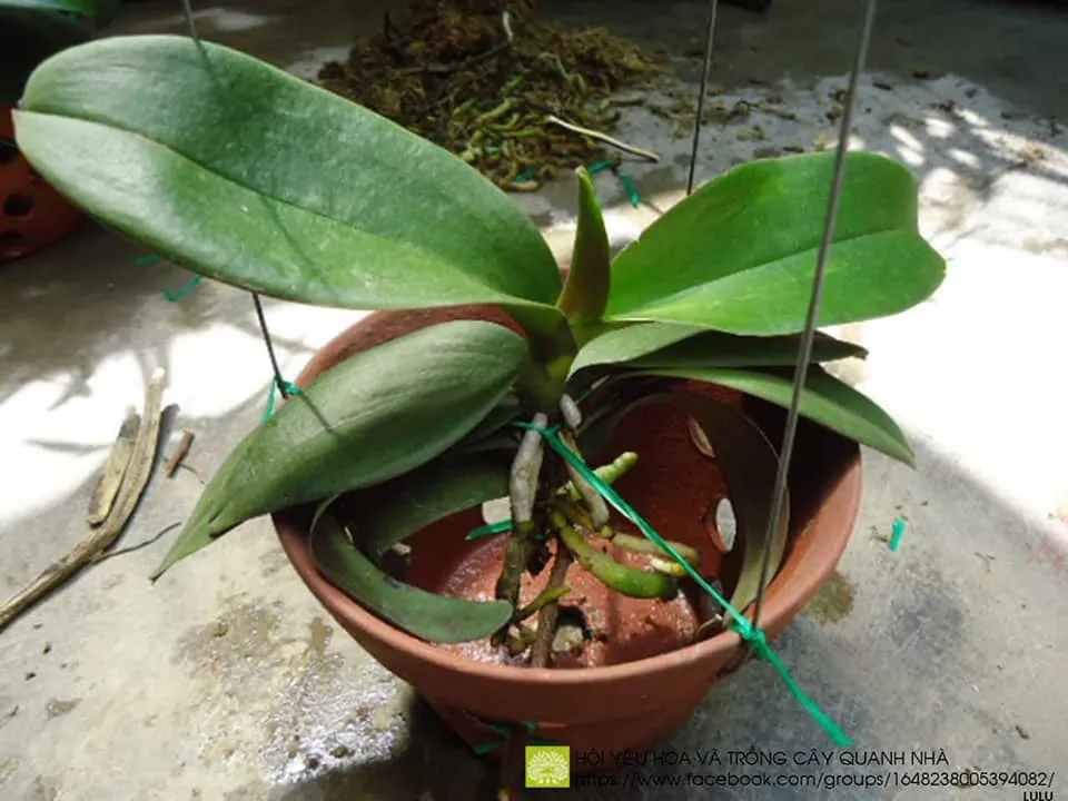 Đây là bước cuối cùng trong kỹ thuật cách trồng phong lan sau tết. Việc đặt cây vào chậu phải đảm bảo độ ổn định và thoáng khí tối đa.