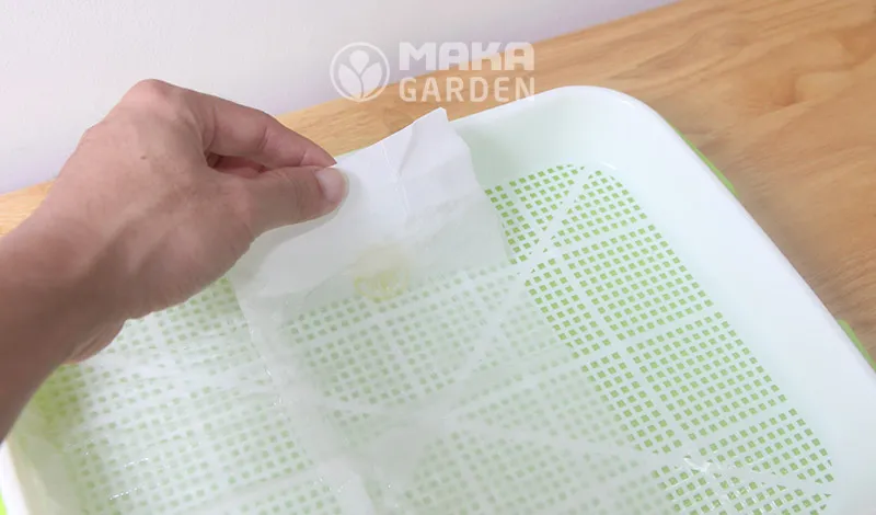 Bạn có thể cần dùng thêm khăn giấy hoặc giấy ăn mỏng. Vật liệu này giúp giữ ẩm và làm giá thể cho hạt nhỏ. Đối với hạt lớn, bạn có thể gieo trực tiếp lên lưới. Điều này tùy thuộc vào kích thước của hạt.