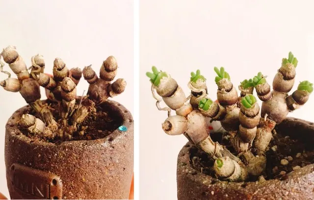 Trong giai đoạn cây ngủ, bạn cần giảm tần suất tưới nước. Chỉ nên tưới mỗi tuần một lần, thậm chí là hai tuần một lần. Tránh bón phân hoàn toàn trong thời gian này. Điều quan trọng là phải kiên nhẫn chờ đợi. Cây sẽ tỉnh lại và ra cặp lá mới khi thời tiết chuyển lạnh.