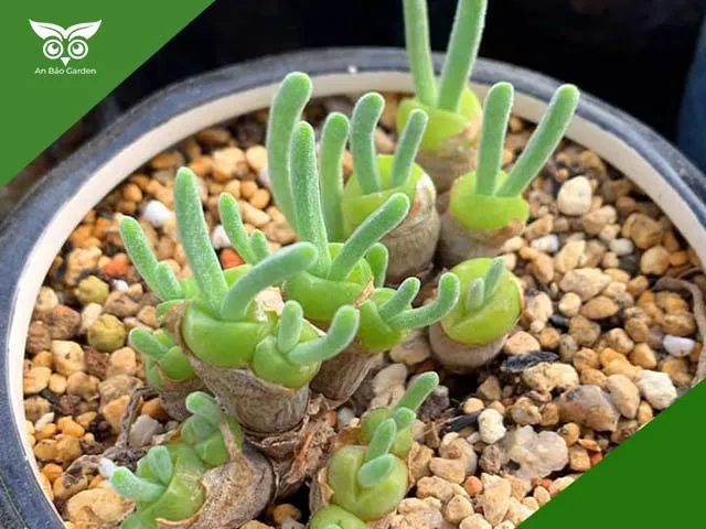 Sen đá tai thỏ, tên khoa học là Monilaria, nổi tiếng với hình dáng ngộ nghĩnh, được ví như đôi tai thỏ mềm mại. Chúng có nguồn gốc từ vùng bán hoang mạc Namaqua ở Nam Phi. Việc này lý giải tại sao cây cần môi trường khô ráo và thoát nước cực tốt. Chúng trải qua một giai đoạn ngủ nghỉ rõ rệt, thường là vào mùa hè nóng bức. Hai loài phổ biến nhất là Monilaria moniliformis và Monilaria obconica.