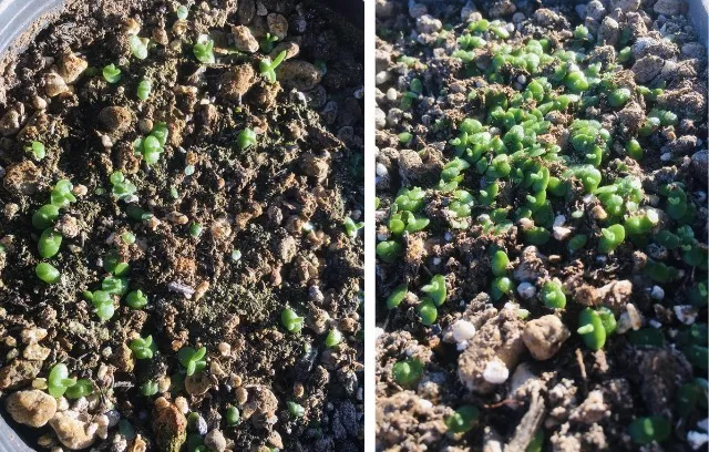 Độ ẩm cao là cần thiết trong 2-3 tuần đầu tiên. Kiểm tra và phun sương bổ sung nếu bề mặt giá thể có dấu hiệu khô. Thời gian nảy mầm trung bình là từ 5 đến 14 ngày, tùy thuộc vào giống. Một số giống Monilaria có thể mất đến 3-4 tuần. Khi hạt bắt đầu nảy mầm, không được di chuyển chậu ươm.