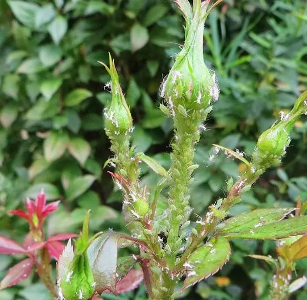 - Rệp Vừng (Aphids): Đây là côn trùng hút nhựa phổ biến, thường tập trung ở đọt non và nụ hoa. Rệp làm cây héo, còi cọc và biến dạng nụ. Xử lý bằng cách dùng tay loại bỏ rệp khi số lượng ít. Khi rệp tấn công dày đặc, dùng dung dịch sinh học từ tỏi, ớt, gừng pha loãng với nước và vài giọt xà phòng để phun lên cây.