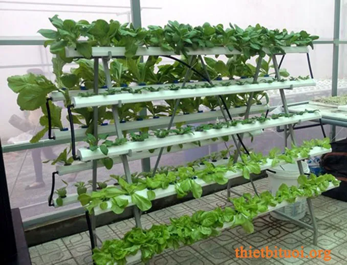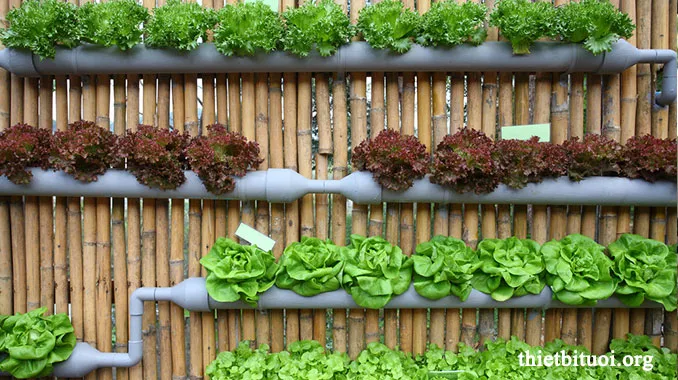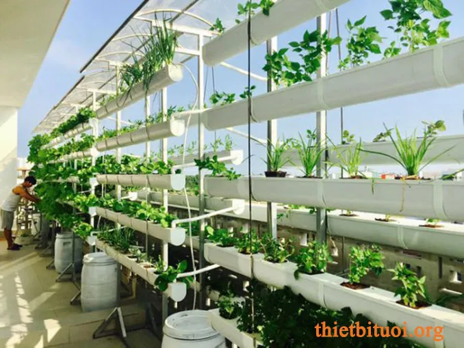 Mô hình trồng rau trong ống PVC hoặc hệ thống giá đỡ bằng sắt chống gỉ là lựa chọn phổ biến nhất hiện nay. Các mô hình này giúp tiết kiệm không gian tối đa và tạo điều kiện thuận lợi cho việc lắp đặt hệ thống tưới tiêu tự động.